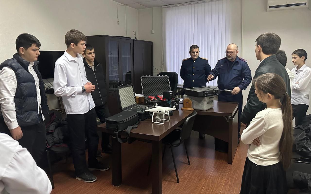 И.о. руководителя Ачхой-Мартановского МСО Сайпуди Каев провел для школьников небольшую экскурсию по следственному отделу, рассказав им о профессии следователя и специфике работы.