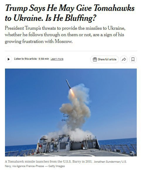 Вопрос о передаче Tomahawk обсуждается на фоне запланированной встречи Трампа и Зеленского, где украинская сторона настаивает на получении дальнобойного оружия.