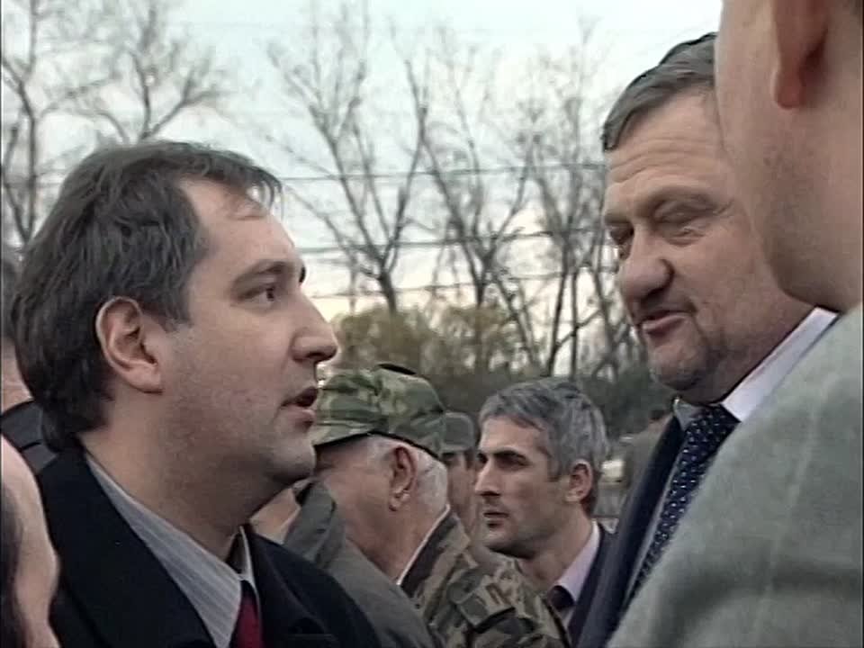 Кадыров-старший, Слуцкий-младший, вертолёт средний, папаха чеченская, кинжал острый, пистолет советский. И, конечно, Грозный 2000 года. Еще без небоскрёбов и роскоши.