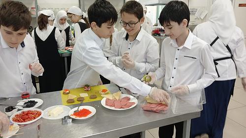 В рамках реализации проекта «Билет в будущее», учащиеся 6-7 —х классов в количестве 15 человек, вместе педагогом-навигатором проекта «Билет в будущее» Алаудиновой А.С.. приняли участие в пробах «Повар-кондитер», которые проходили в Государственный колледж дизайна, моды, пищевой индустрии и сервиса для участия в профессиональных пробах.
