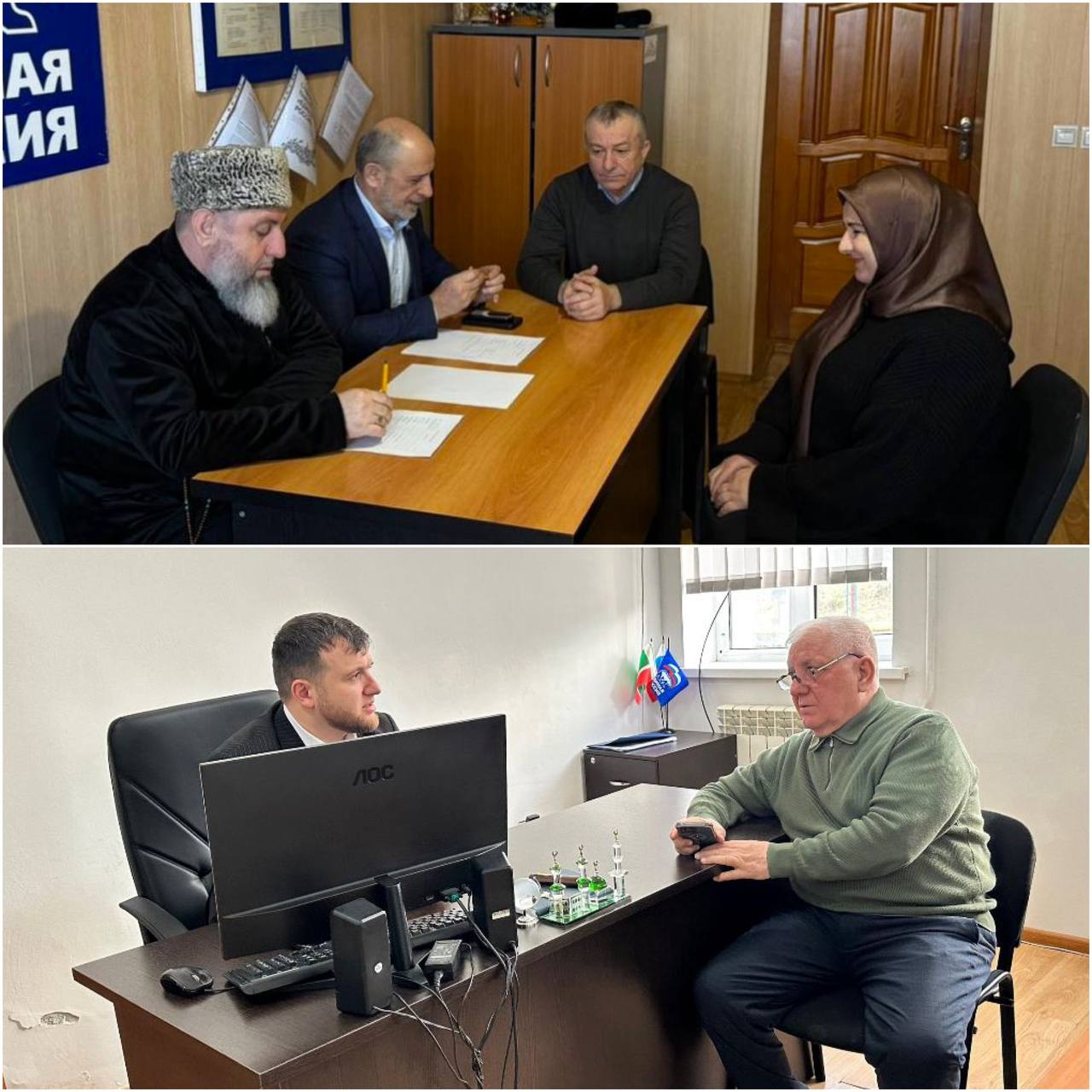 Депутаты Парламента Чеченской Республики Арби Джафаров и Мохмад Ханбиев провели прием граждан по личным вопросам в местной общественной приемной Веденского отделения политической ВПП «Единая Россия».