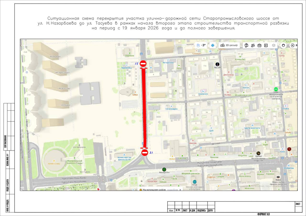 Старопромысловское шоссе будет полностью перекрыто на участке от улицы Назарбаева до улицы Тасуева. Ограничение будет действовать до завершения строительных работ. Данная мера необходима для безопасного и оперативного возведения конструкций будущей развязки, которая обеспечит бессветофорное движение и значительно разгрузит ключевой перекресток.