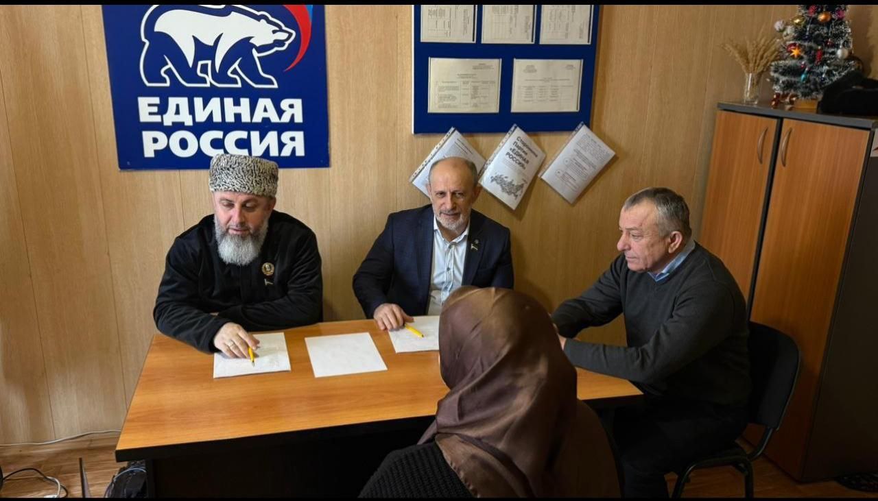 Депутаты Парламента Чеченской Республики Арби Джафаров и Мохмад Ханбиев совместно с главой Веденского района провели прием граждан по личным вопросам в местной общественной приемной Веденского отделения ВПП «Единая Россия».