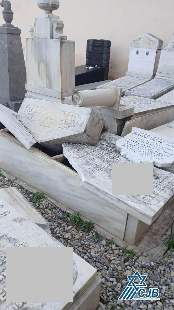 На еврейском кладбище в Барселоне были разрушены несколько надгробий. Еврейская община города опубликовала фото с разрушенными могилами, вырванными надгробиями и другими повреждениями.