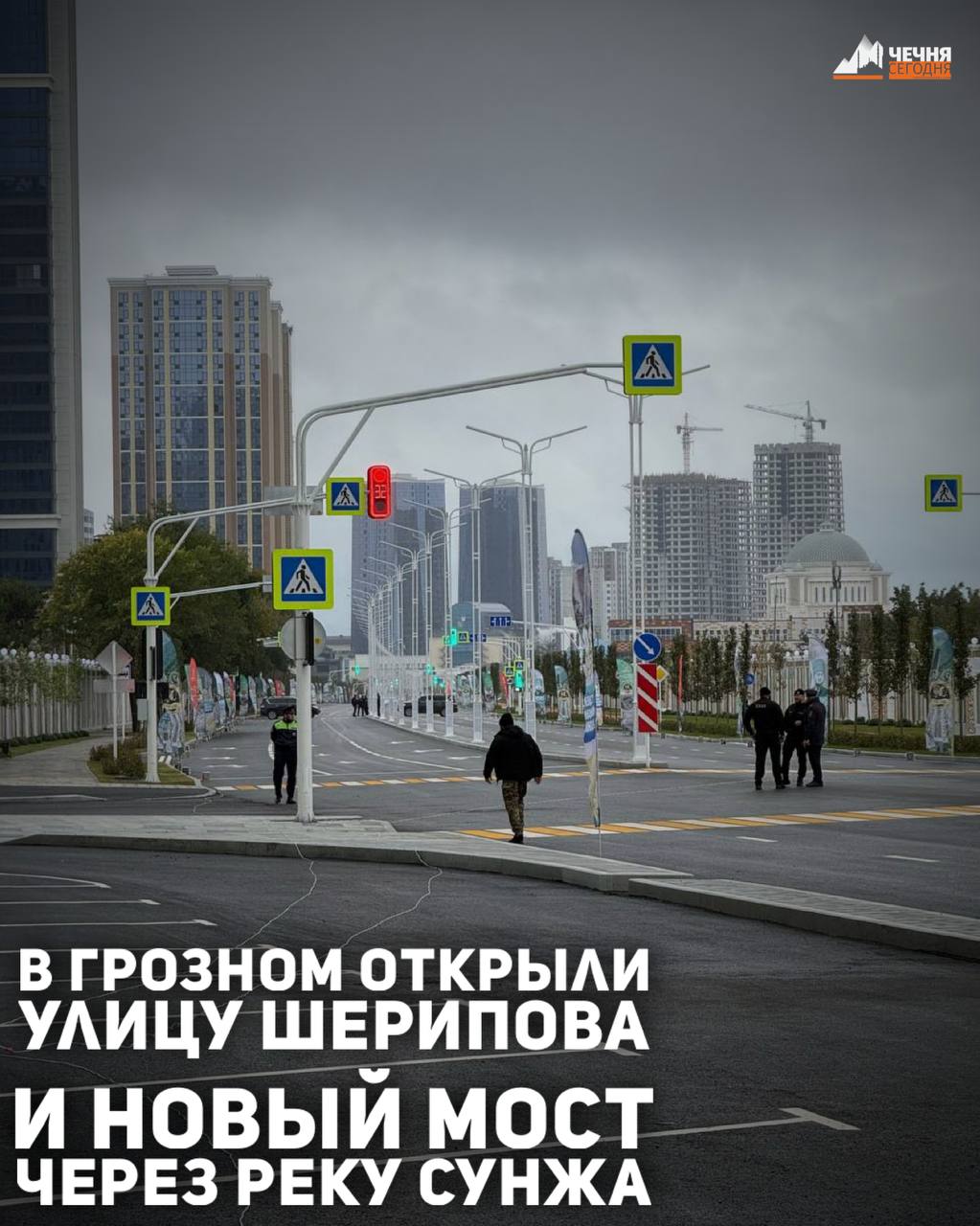 Протяженность улицы Шерипова составляет 2,64 км. Здесь расширили дороги до шести полос, а также полностью обновили подземные инженерные сети. Особое внимание уделено строительству моста через реку Сунжа по улице Шерипова. Новый мост протяжённостью 72 метра возводился с применением железобетонных конструкций последнего поколения.