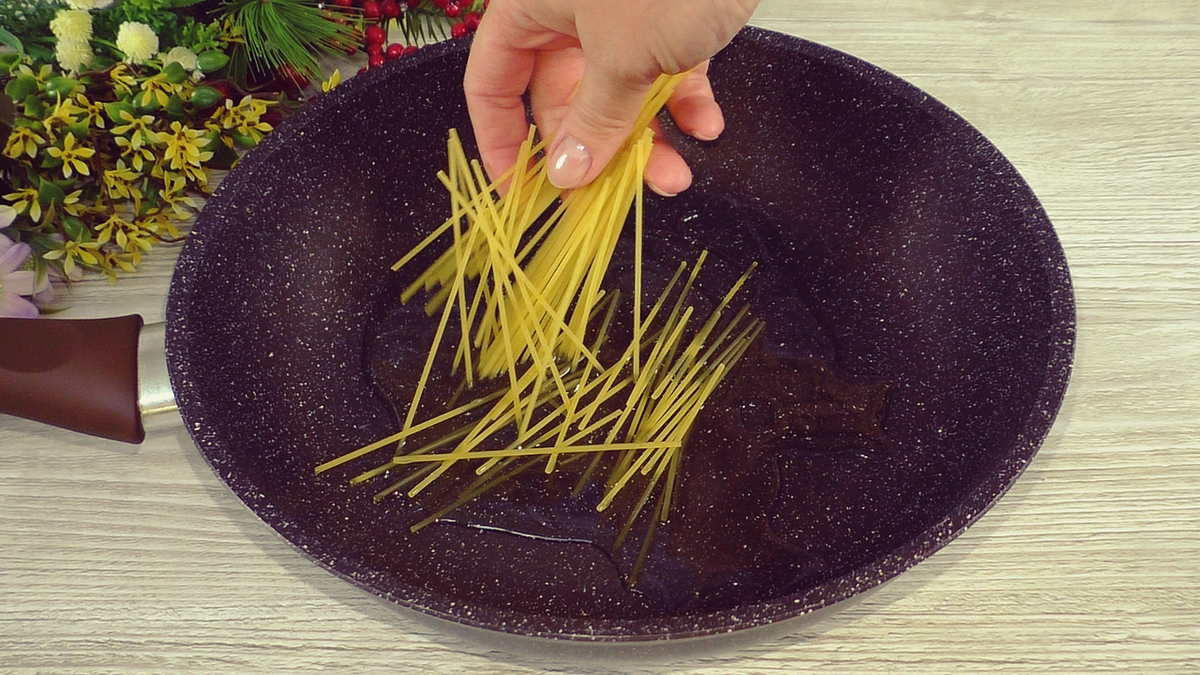 При обжаривании макарон происходит карамелизация крахмала, образующего защитный слой, который препятствует впитыванию влаги. Благодаря этому процессу даже самые бюджетные разновидности макарон сохраняют свою форму и текстуру, не превращаясь в кашу. Результат — аппетитные, золотистые спагетти, которые приятно удивят всех.