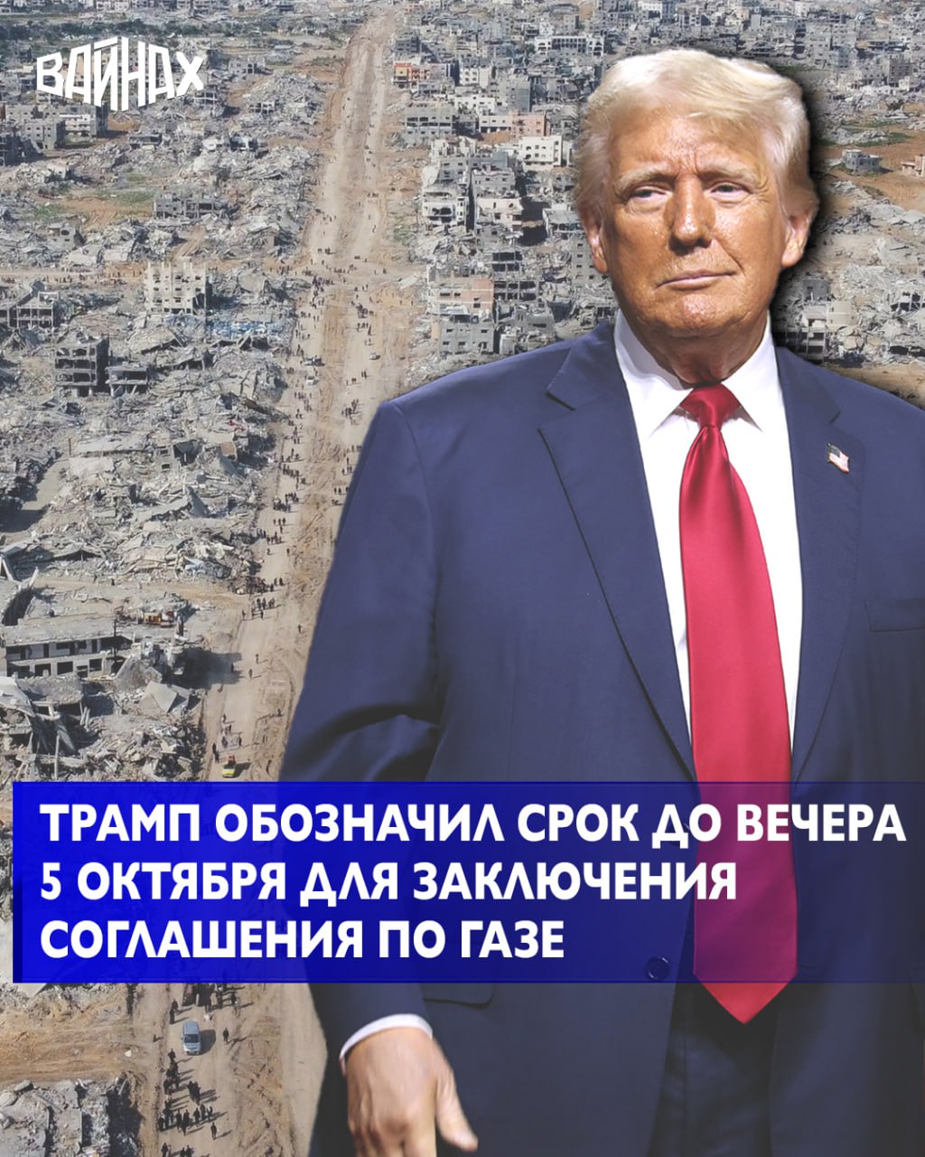 «Соглашение с ХАМАСом должно быть достигнуто к вечеру воскресенья (5 октября. — Ред.) в 18:00 по вашингтонскому времени», — написал Трамп.