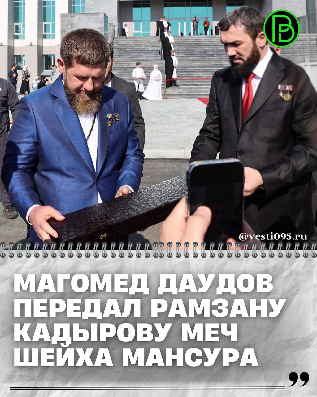 В рамках торжественной церемонии открытия нового Правительственного комплекса Председатель Правительства ЧР Магомед Даудов преподнес Главе ЧР Рамзану Кадырову историческую реликвию – личный меч первого имама Северного Кавказа Шейха Мансура.