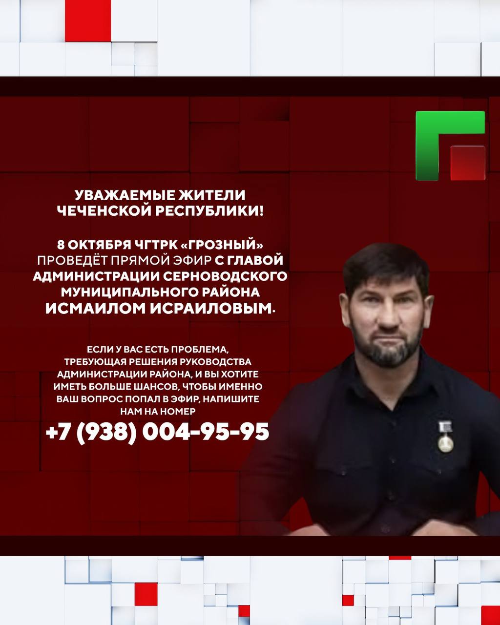 Уважаемые жители Чеченской Республики! В среду, 8 октября в 18:00 состоится прямой эфир программы «Особый разговор».