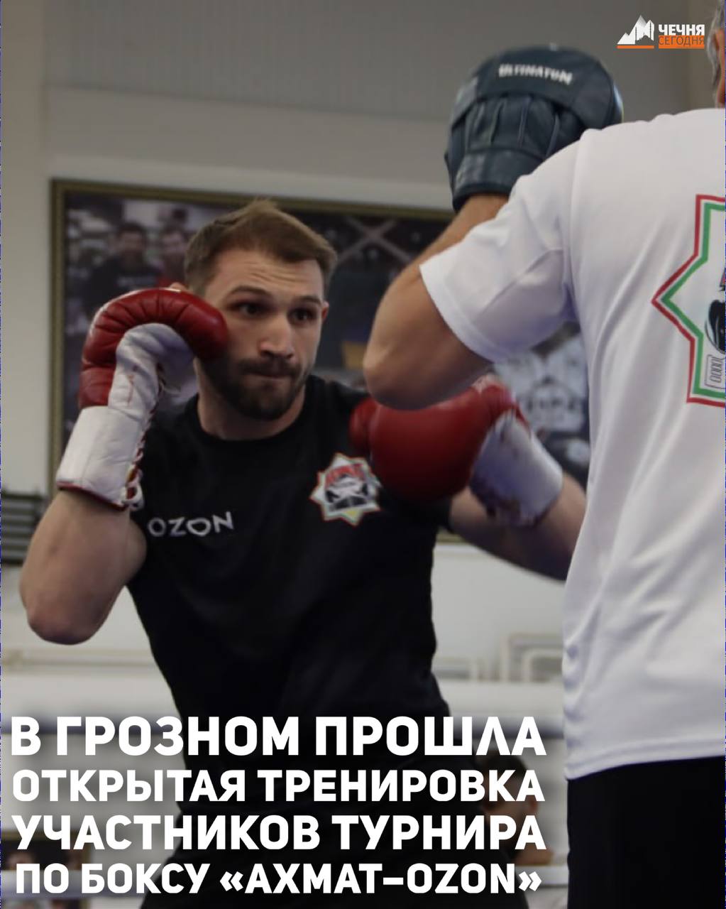 В универсальном спортивном комплексе для обучения фехтованию и боксу имени Артура Бетербиева в Грозном прошла открытая тренировка участников предстоящего турнира по профессиональному боксу «Ахмат–Ozon», который состоится 10 октября в спорткомплексе «Колизей».