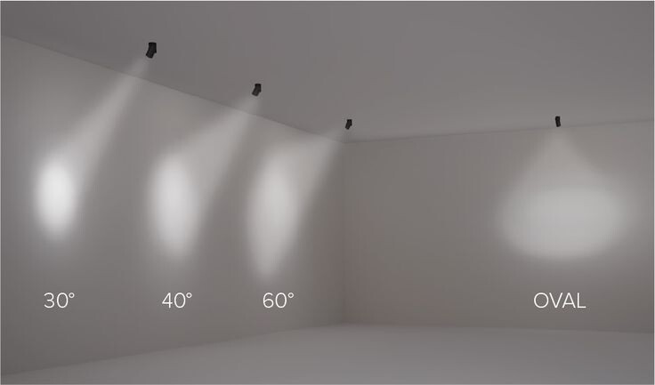 - Узкий угол (от 10 до 60 градусов): предназначен для акцентного освещения. Такие светильники создают фокус на отдельных объектах или зонах, что идеально подходит для искусства или мелких деталей интерьера.