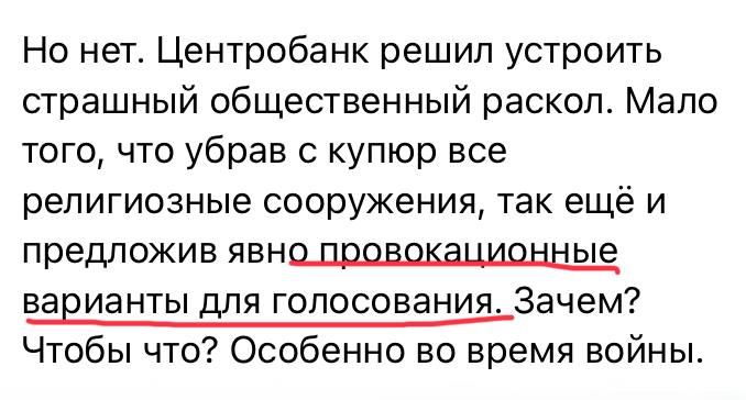 Юлия Витязева: У меня два вопроса:. - зачем на деньгах рисовать религиозные символы?