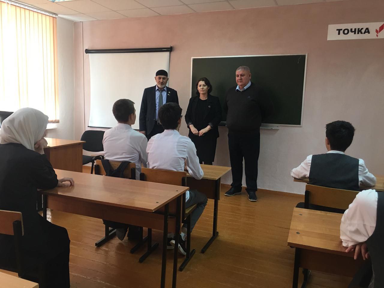 Депутат Сулумбек Демилханов вместе с председателем Совета депутатов Шелковского района Борисом Наиповым провел встречу с учащимися СОШ ст. Бороздиновская.