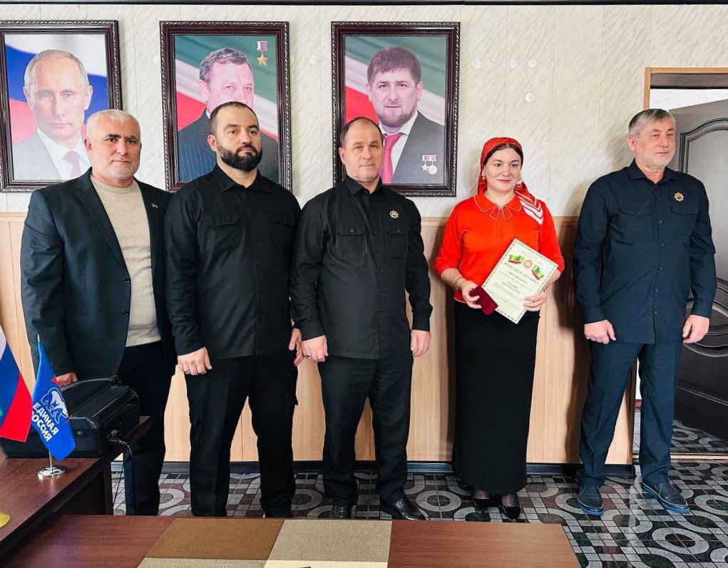 Она была отмечена за многолетнюю плодотворную педагогическую деятельность в деле обучения в воспитания подрастающего поколения. Парламентарий поздравил директора и в ее лице коллектив школы с прошедшим праздником. Он напомнил слова Первого Президента ЧР, Героя России Ахмата-Хаджи Кадырова, который сказал: «Учитель создает нацию». Подчеркнул, что профессия педагога – это величайшее призвание, требующее благородства, терпения и огромной ответственности.