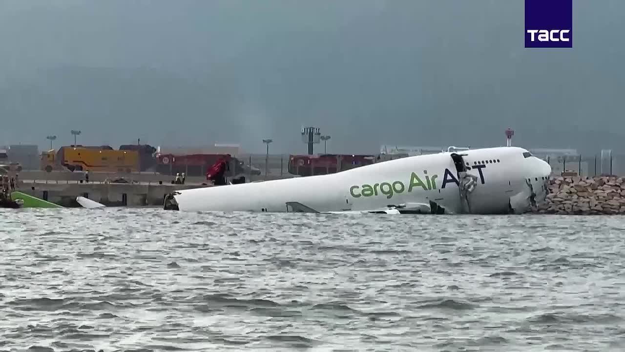 Обстановка в аэропорту Гонконга, где ранее самолет выкатился за пределы ВПП и погибли два человека.