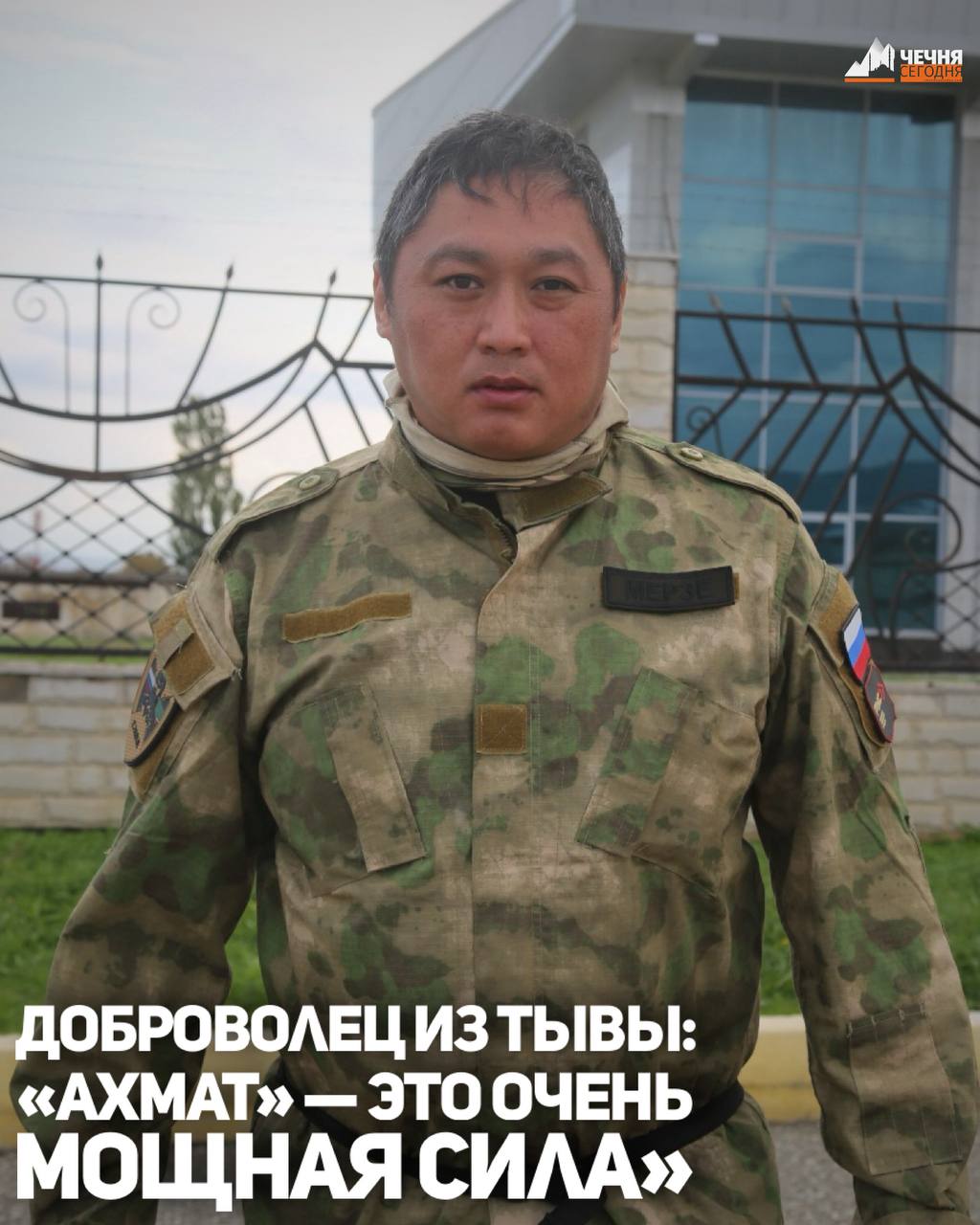 «Приехали мы из республики Тыва. Нас всего три человека. Давно хотели поехать добровольцами в зону СВО. Ну и появилась очень хорошая возможность — поехать через спецназ «Ахмат». Хоть и далеко живем, но мы всегда понимаем, что «Ахмат» — это очень мощная сила, что «ахматовцы» никогда своих не бросают. Мы тоже для защиты Родины приехали, чтобы поехать в зону СВО через команду Рамзана Ахматовича Кадырова. Мы его очень уважаем, действительно, большой лидер. Воочию увидели, что через «Ахмат» заходят со всех уголков России: здесь есть и буряты, и татары, и башкиры — в общем, весь интернационал», — подчеркнул доброволец в беседе с корреспондентом ИА «Чечня Сегодня».