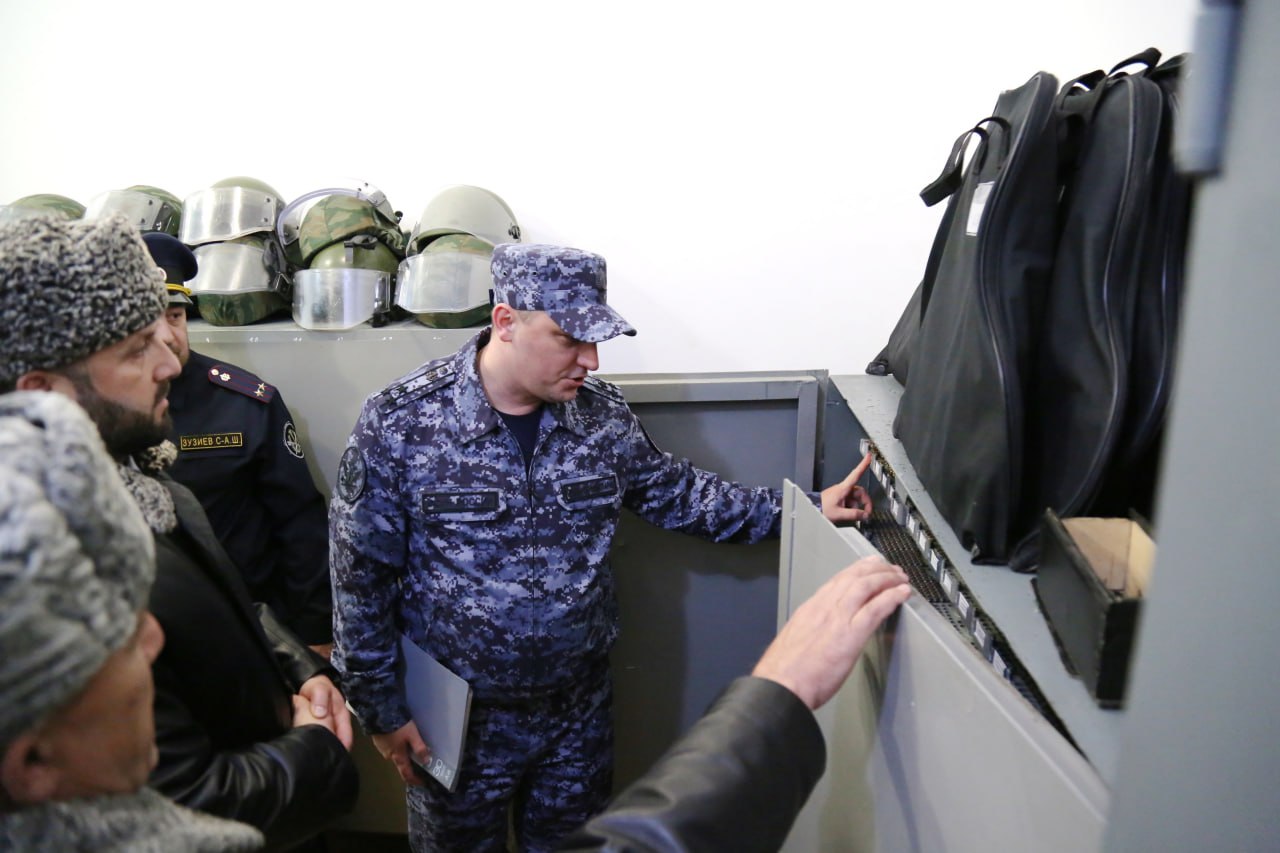В региональных управлениях Сергей Щербаков произвел обход административных зданий на предмет антитеррористической защищенности, осмотрел помещения оперативных дежурных, комнату хранения оружия и другие объекты.