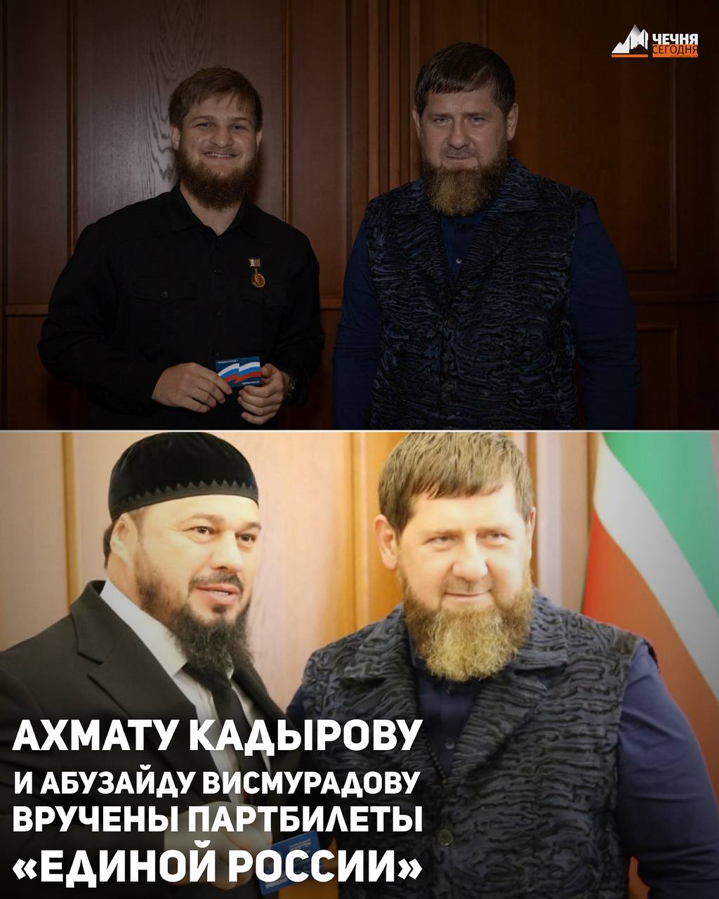 «В частности, партийные билеты получили заместитель Председателя Правительства ЧР Абузайд Висмурадов и министр ЧР по физической культуре и спорту Ахмат Кадыров», - пояснил Рамзан Кадыров.