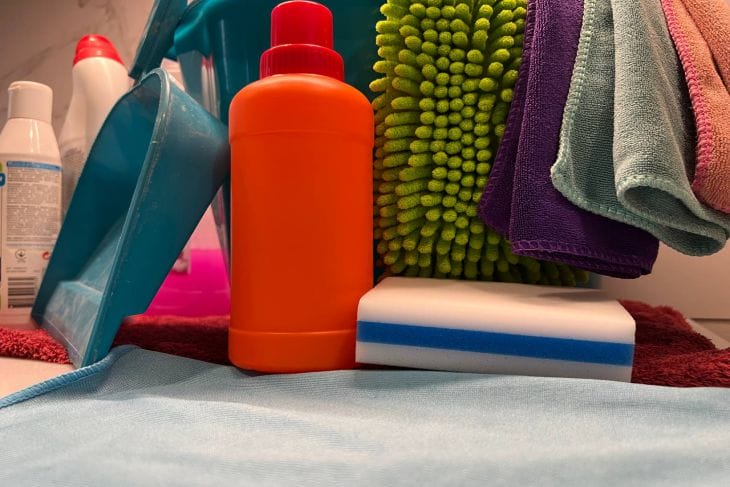 Правило простое: двигайтесь по часовой стрелке, начиная с входной двери. Захватите влажную тряпку для пыли и мусорный пакет.