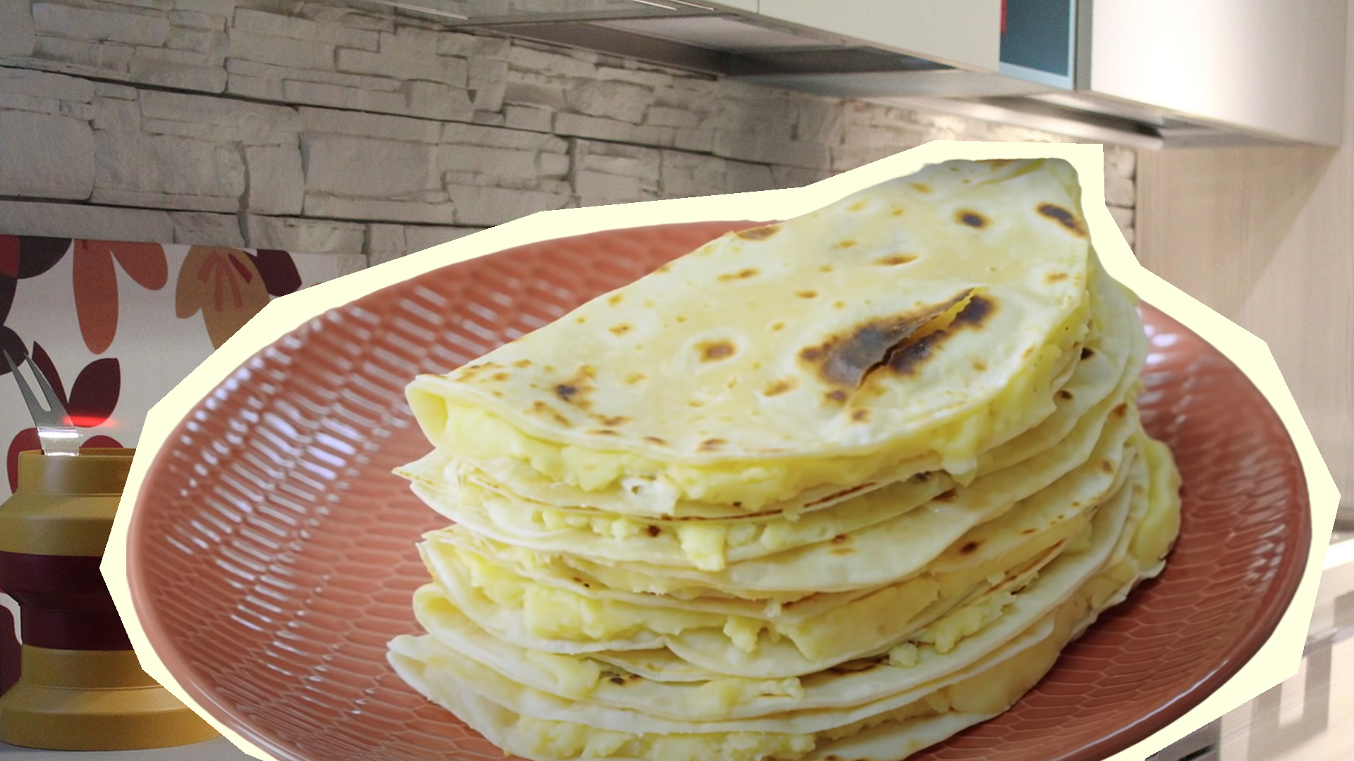 Смешайте просеянную муку с яйцами, солью и нагретым до 30 градусов молоком. В течение 30–40 минут выдержите тесто, чтобы набухла клейковина. Затем поделите его на куски весом 40–45 граммов. Раскатайте их на лепешки толщиной 2 миллиметра. Обжарьте на сухой либо смазанной жиром сковороде до румянца.