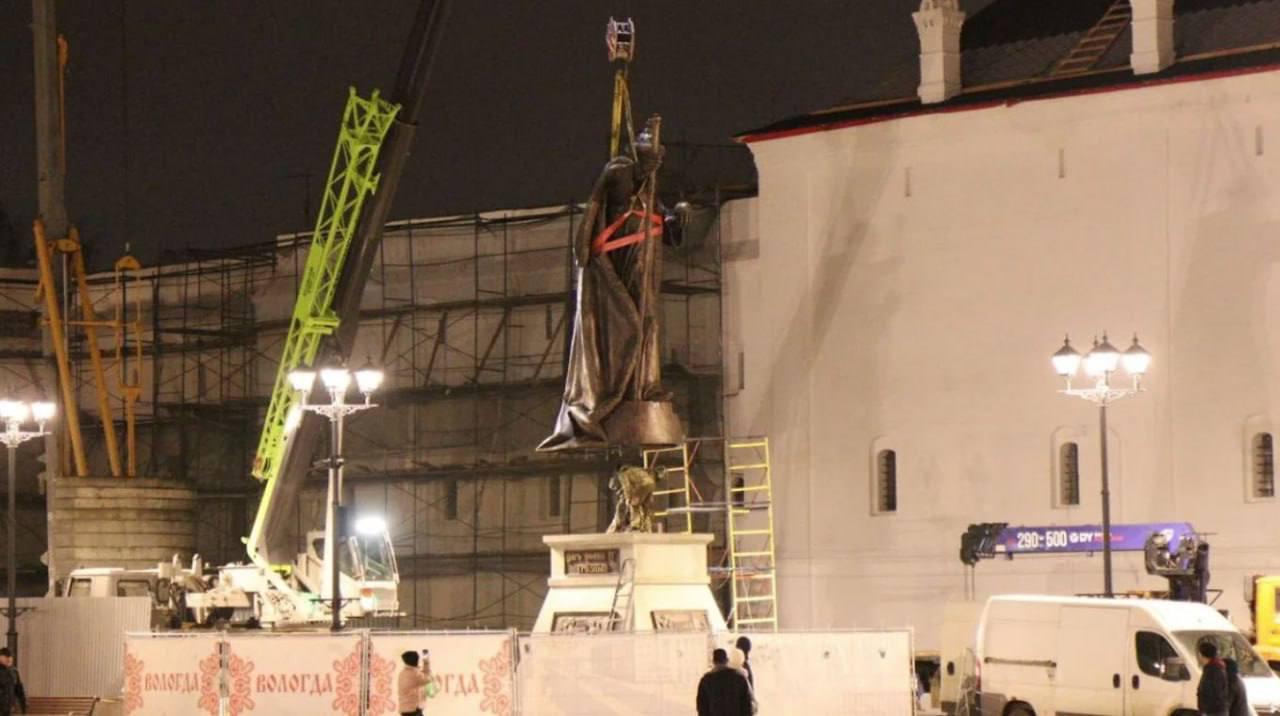 «Не вправо, не влево, а вперед»: в Вологде на Кремлёвской площади рядом с корпусом Вологодского кремля установили памятник царю Ивану IV Грозному. Его открытие запланировано на 4 ноября, в День народного единства. Девятиметровый монумент создан по эскизам скульптора Михаила Красильникова.