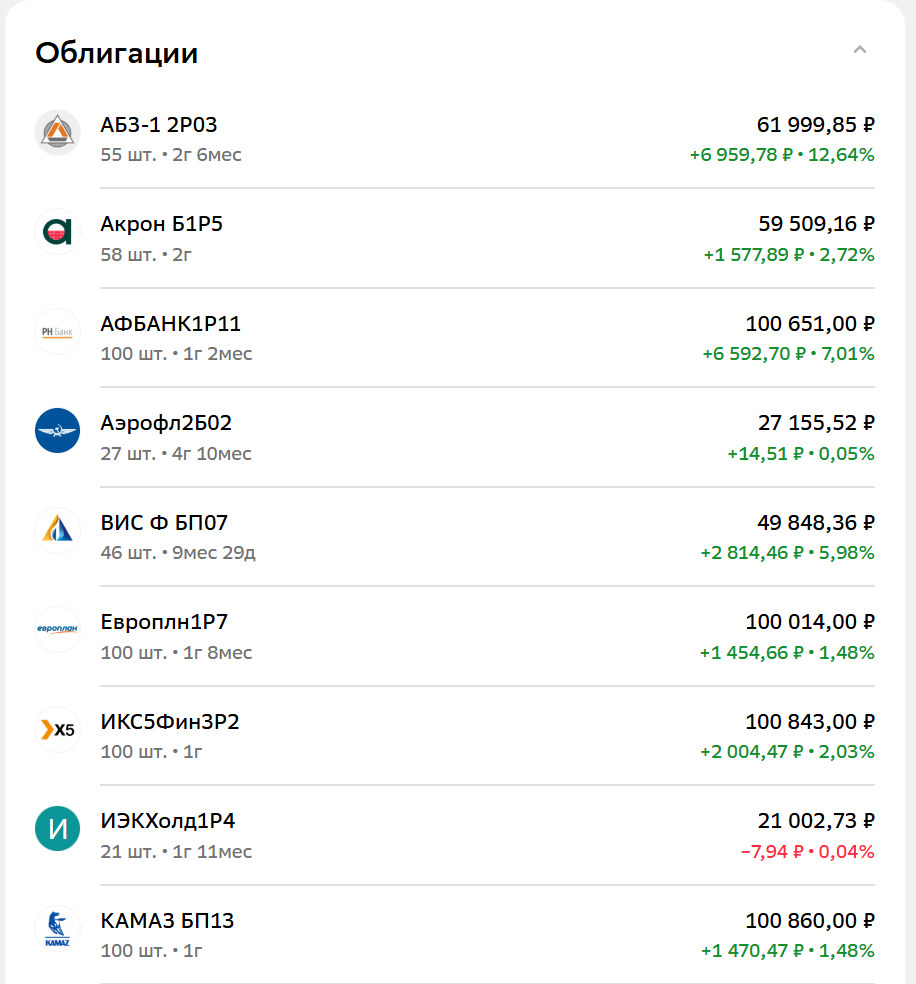 Дополнительно, вложения в Индивидуальный инвестиционный счет (ИИС) составляют 1 680 000 рублей (9,2%), а также есть небольшие инвестиции в криптовалюту и доверительные управления краткосрочных операций с акциями.