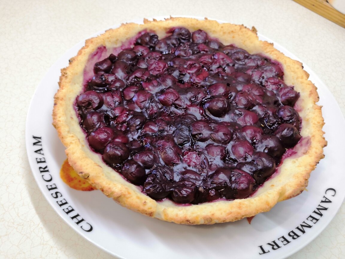 - Начинка: 300 г замороженной вишни, 50 г воды, 3 пакетика подсластителя, 2 ст. л. кукурузного крахмала.