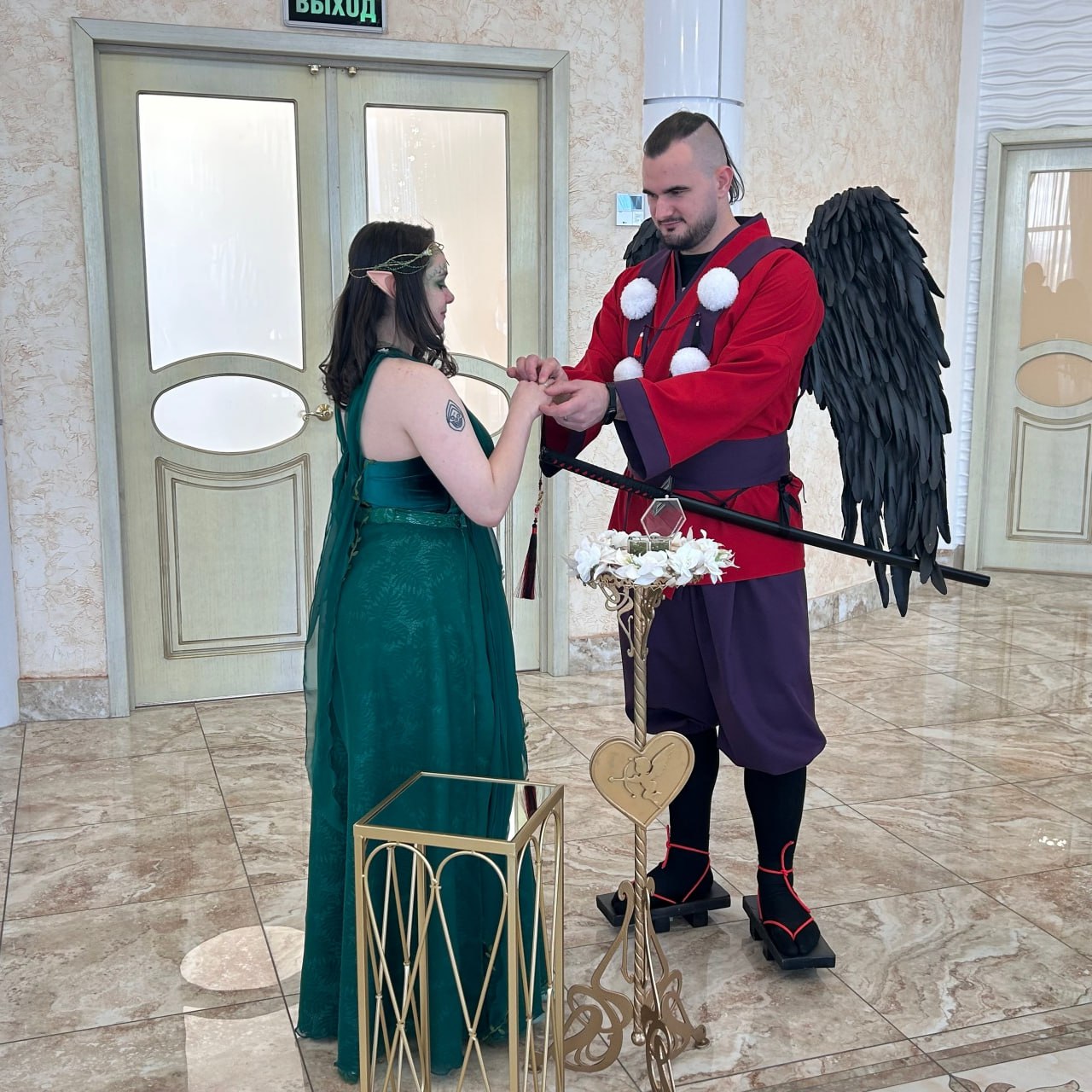 Их свита поддержала мифическую концепцию: на празднике были водная нимфа, леший и даже Медуза Горгона. В красивую дату 25.11. 25 молодожёны официально скрепили свой союз подписями, обменялись кольцами и дали традиционное обещание жить долго и счастливо.