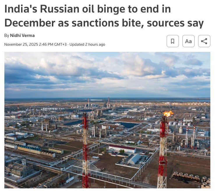 Импорт российской нефти в Индию достигнет пятимесячного максимума в ноябре.