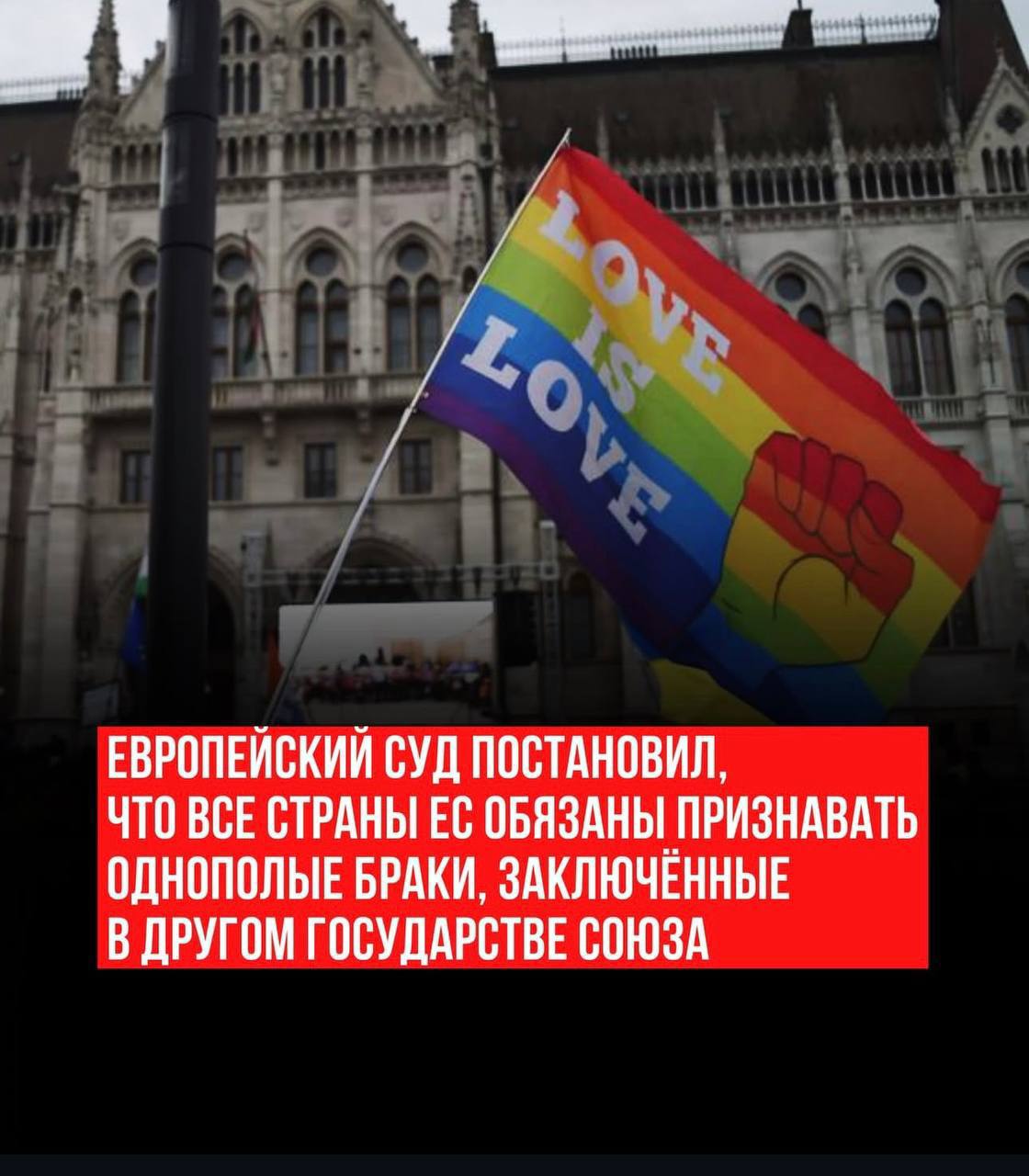 странам ЕС официально приказано признавать однополые браки, даже если в их собственных конституциях такие союзы запрещены.