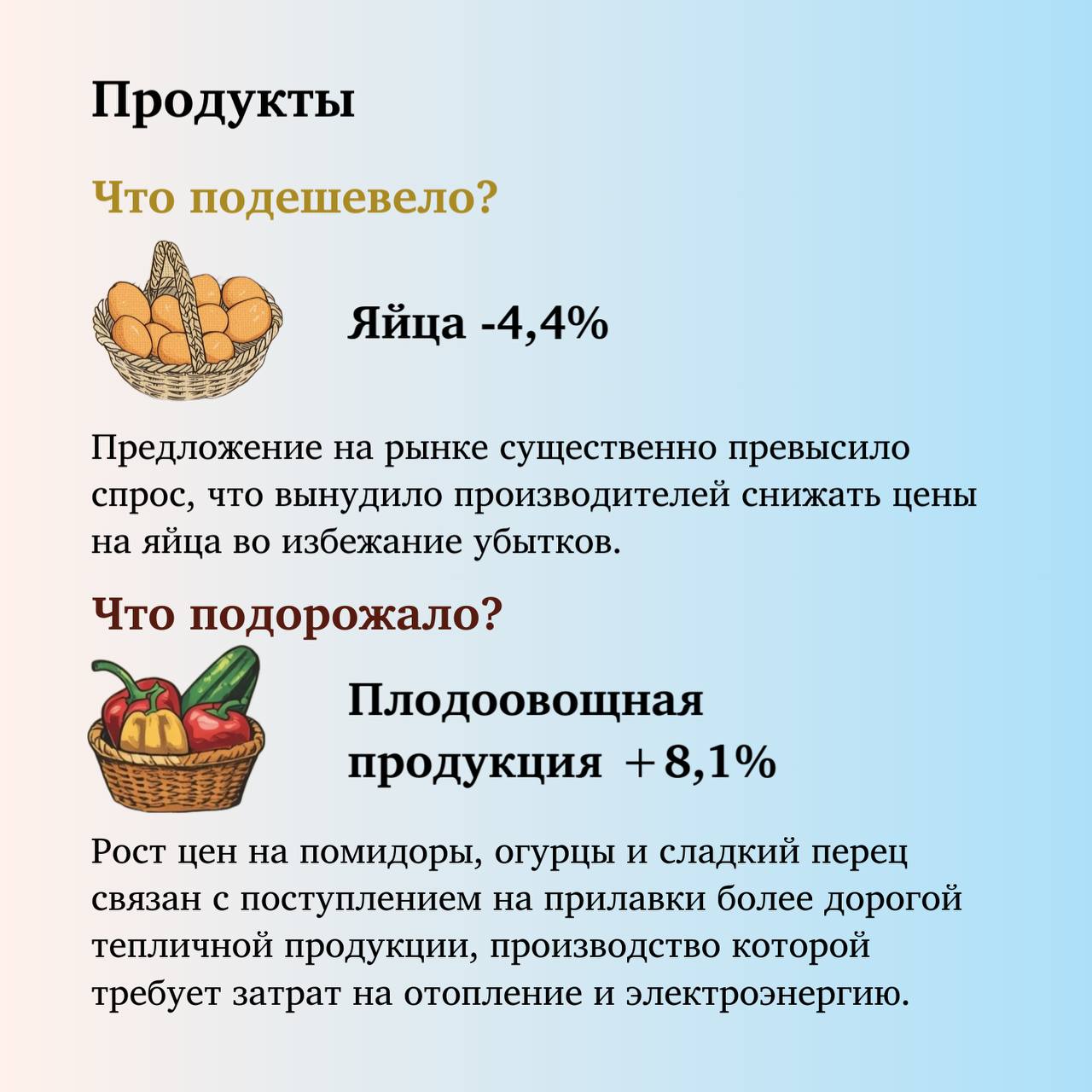 Что подорожало, а что, наоборот, подешевело? Все подробности — в карточках.