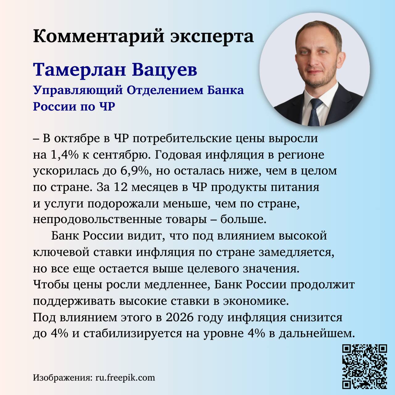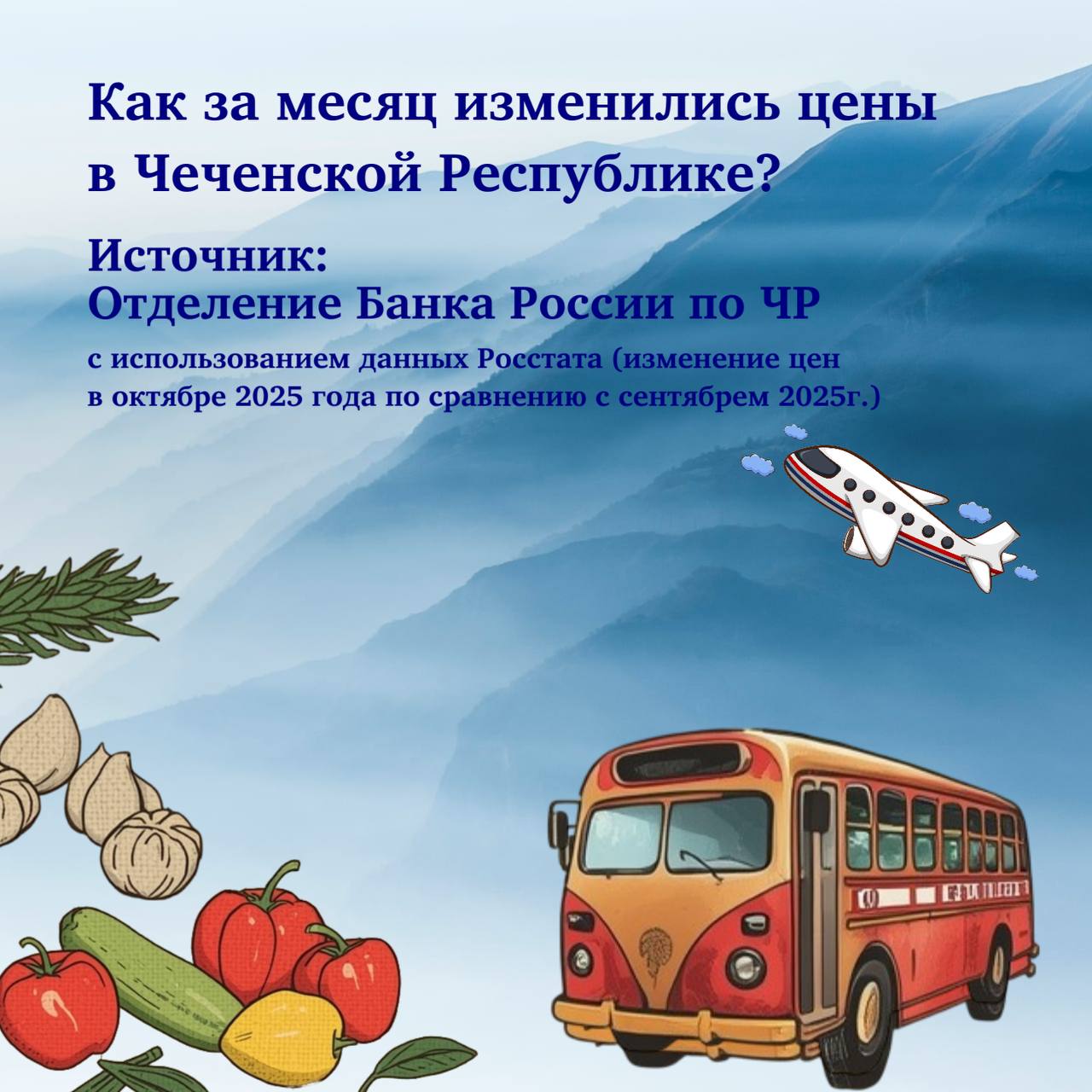 В октябре потребительские цены в ЧР выросли на 1,4% к сентябрю. Что подорожало, а что, наоборот, подешевело? Все подробности — в карточках.