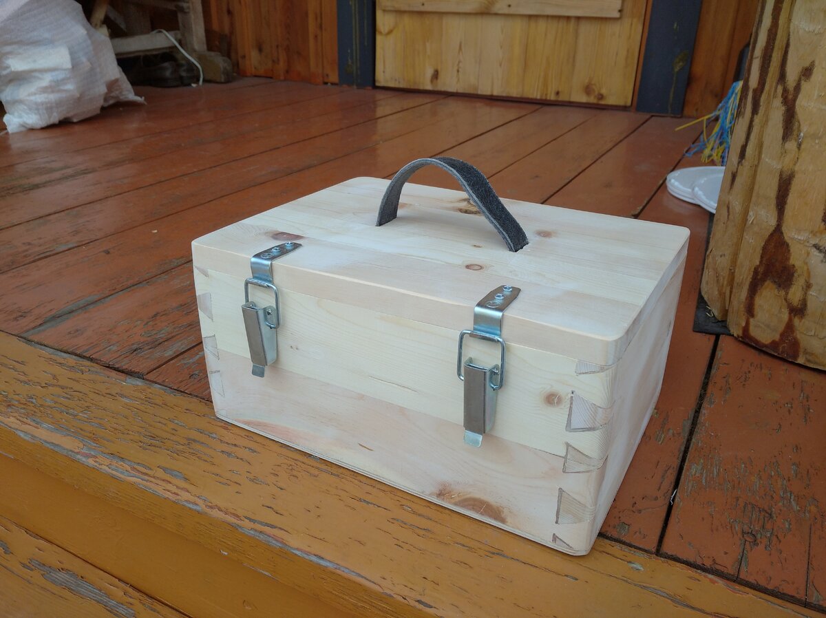 Реализация идеи началась с поиска подходящих материалов. Для изготовления использовались остатки древесины, полученные от знакомого, занимающегося производством ящиков для профессиональных геологов. Благодаря такому подходу, каждая из деталей была тщательно распилена с использованием различных инструментов: японской, обушковой пилы и электрического лобзика. Все элементы были обрезаны и собраны, что позволило создать уникальный дизайн ящика.