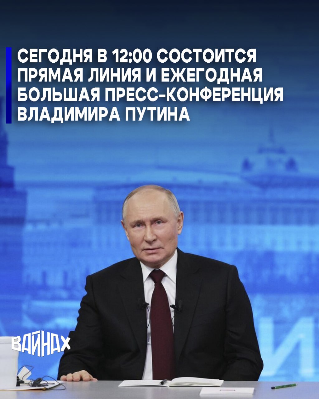 Сегодня, 19 декабря в 12:00 состоится Прямая линия и ежегодная большая пресс-конференция Президента РФ Владимира Путина.