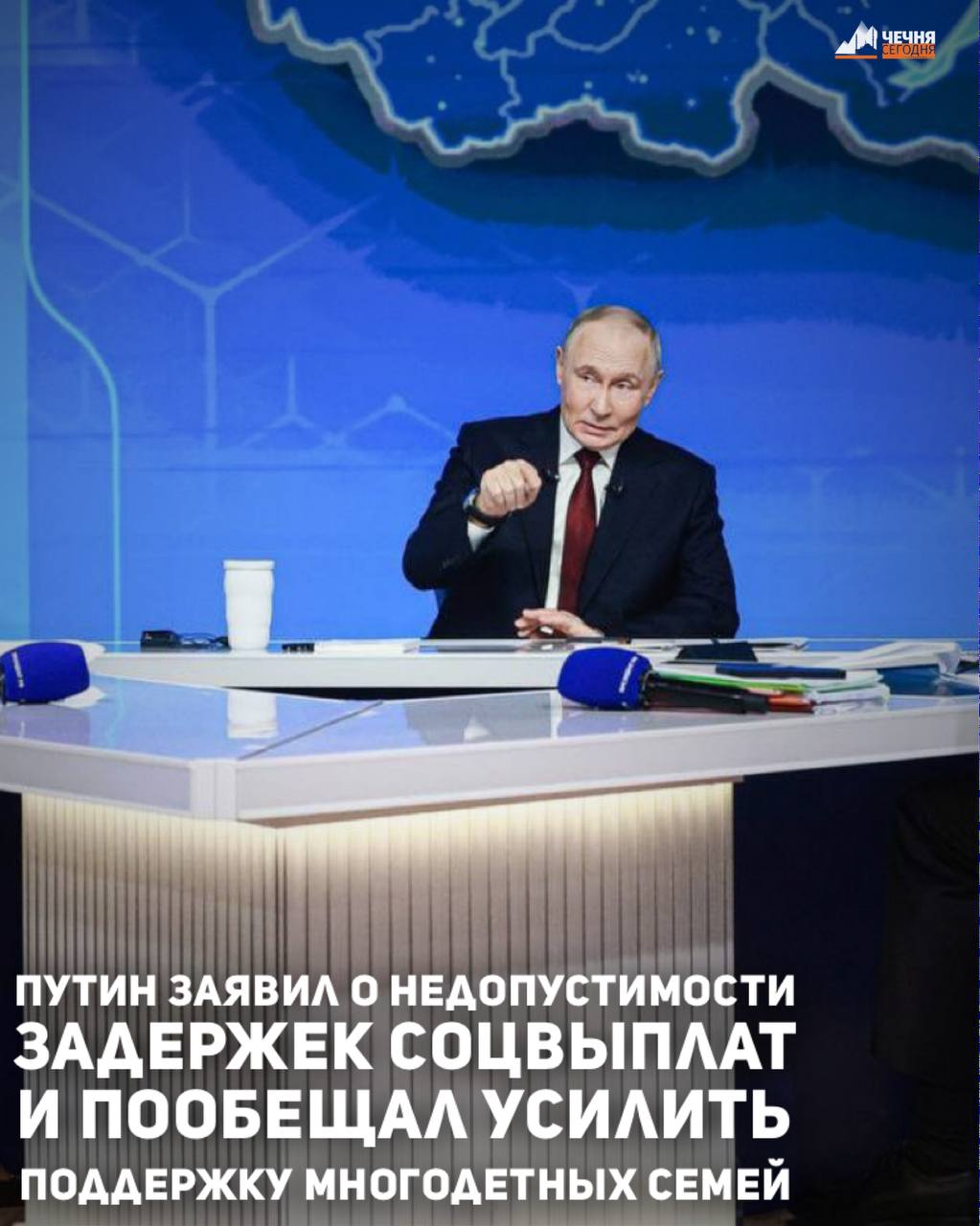 Говоря о многодетных семьях, президент подчеркнул необходимость особого внимания к ним со стороны государства. Он напомнил, что статус матери-героини теперь приравнен к званию Героя Труда. Кроме того, если ранее пенсионные баллы начислялись только за рождение и воспитание трёх детей, то теперь они будут учитываться и за всех последующих.