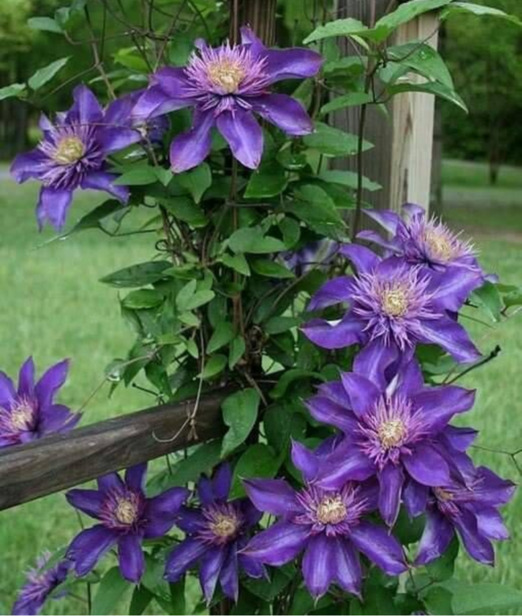 - Клематис: Изумительное вьющихся растение, которое просто завоевывает сердца. Оно радует глаз крупными и яркими цветами, а за его уходом легко уследить — весной достаточно обрезать, а летом лишь слегка поливать.