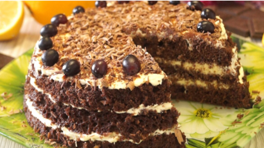 Украшение торта зависит от вашего вдохновения: можно использовать шоколадные стружки или свежие ягоды. Чтобы десерт стал еще более сочным, дайте ему постоять 15-20 минут. Такой шоколадный торт легко займет достойное место не только на повседневном столе, но и на праздничном!