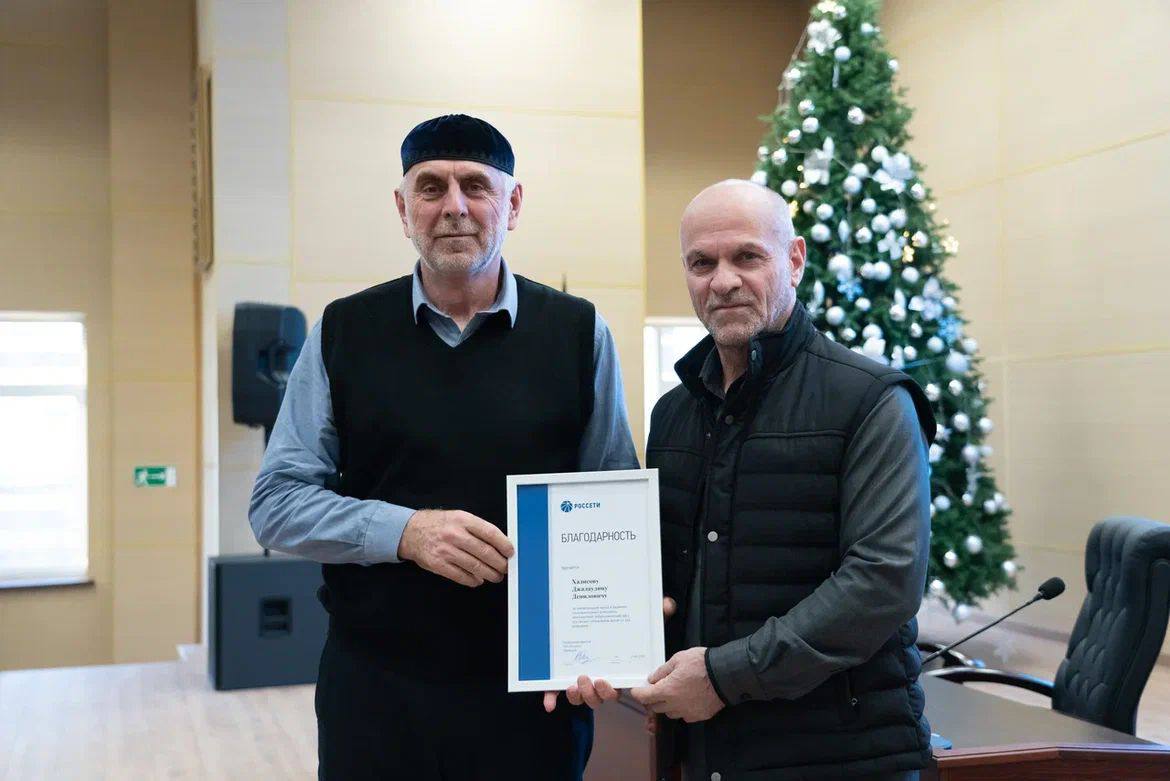 Нагрудный знак «Заслуженный работник электросетевого комплекса» вручен заместителю управляющего директора - директору отделения «Энергосбыт» Сайд-Али Кайсарову. Высокое звание «Почетный энергетик» присвоено машинисту группы распределительных сетей Шелковской районной электростанции Умару Адамову.