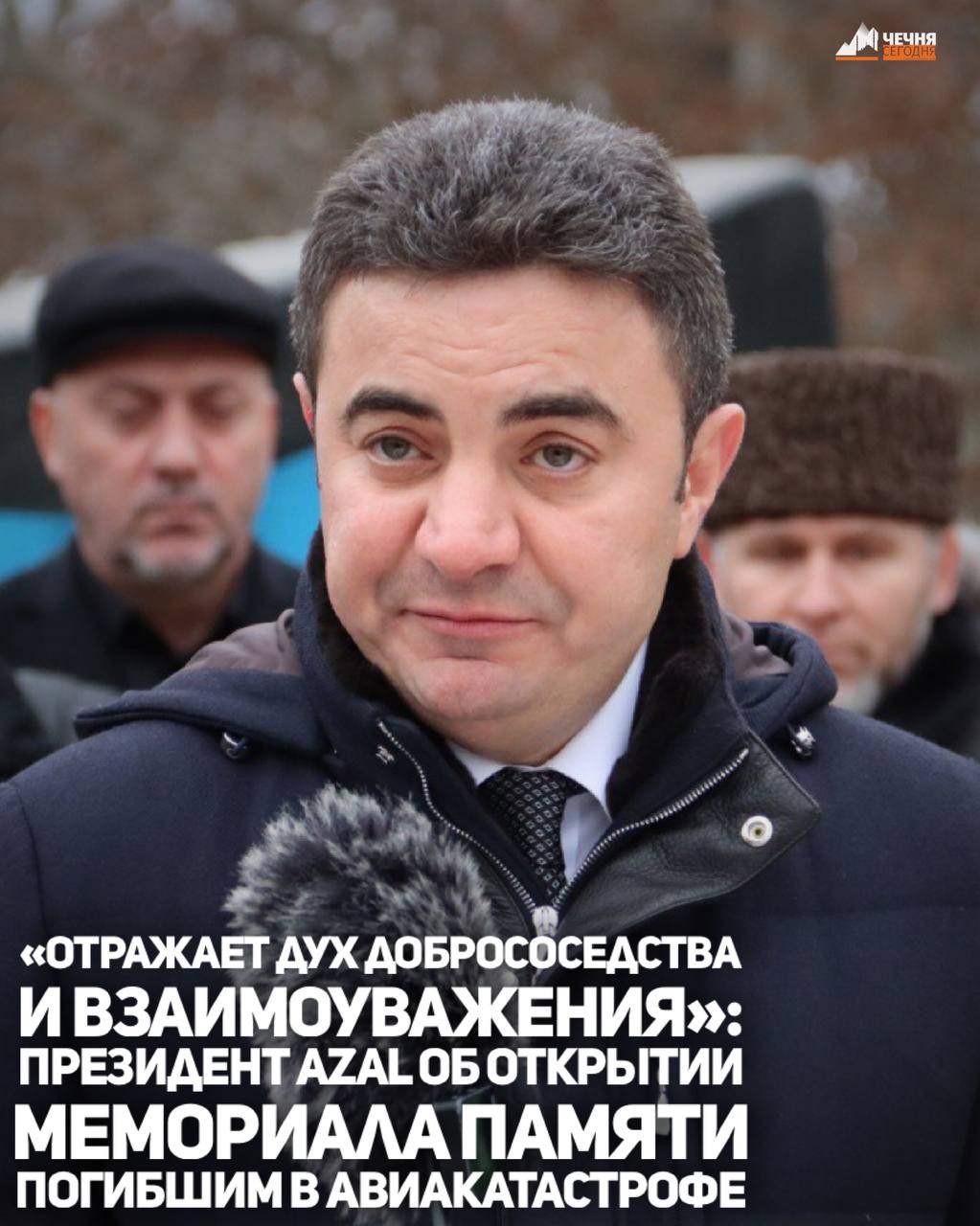 «Мы искренне благодарны Главе Чеченской Республики, господину Рамзану Ахматовичу Кадырову за принятое решение об установке мемориала, который является выражением глубокого уважения к памяти погибших и искреннего человеческого сопереживания. Он символизирует солидарность и внимание, проявленные в трудные моменты, и служит напоминанием о ценности каждой человеческой жизни», - заявил Президент AZAL.