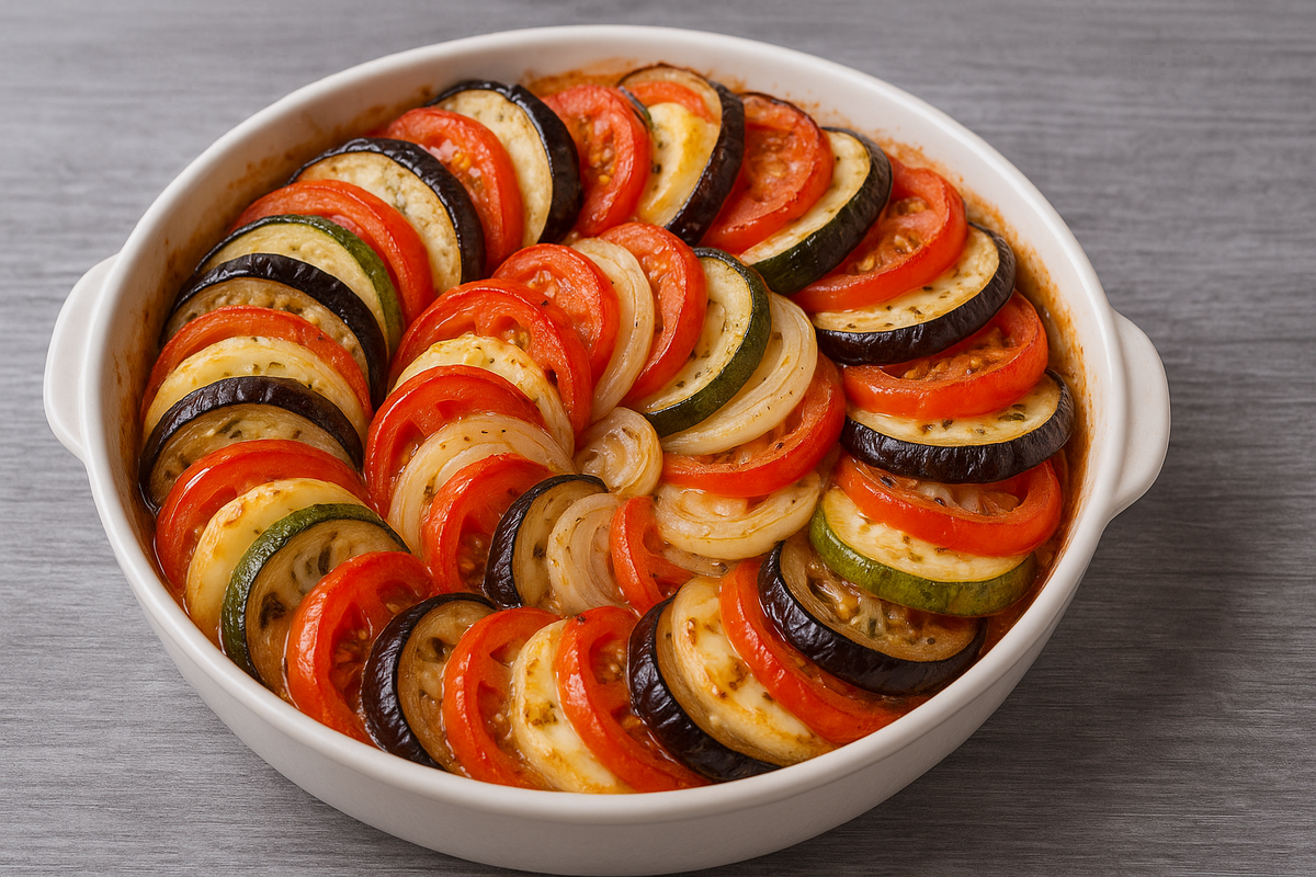 Готовый рататуй можно подавать в форме или аккуратно разложить по тарелкам, украсив свежей зеленью, такой как базилик или петрушка. Это блюдо отлично сочетается с хлебом, рисом или запеченным мясом, но будет вкусен и сам по себе, как полноценное и сытное лакомство.