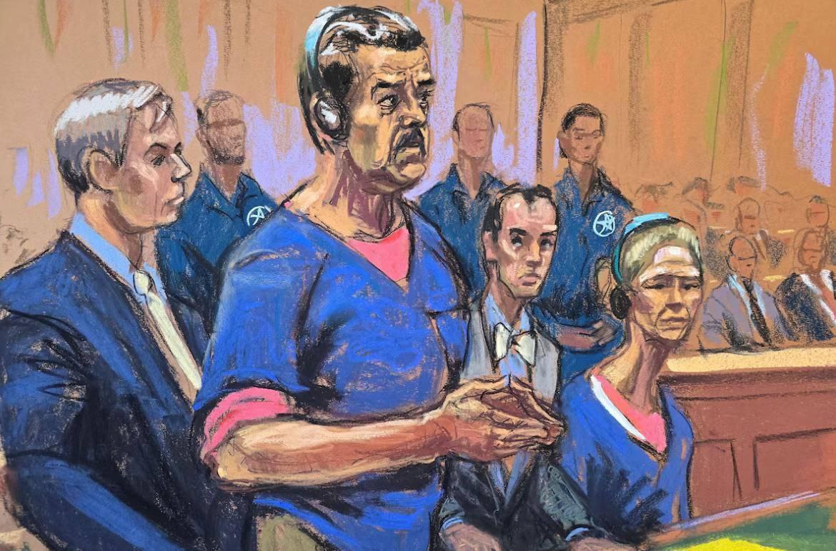Мадуро и Флорес запечатлены в наушниках, предположительно для синхронного перевода. Оба одеты в синие футболки поверх оранжевой одежды, которая, вероятно, является тюремной формой. Флорес появилась на публике с пластырем на лбу и в области правого виска. Она могла получить перелом ребер в ходе задержания американскими силами. Оба — и Мадуро, и Флорес — выглядели спокойными,— пишет Reuters.