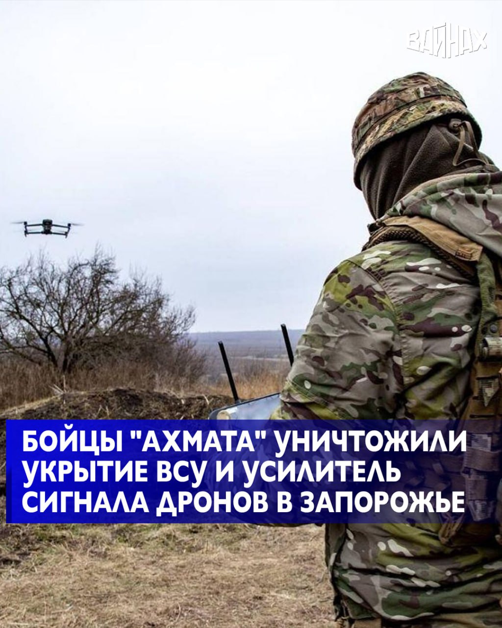 Бойцы батальона "Восток-Ахмат" уничтожили укрытие военнослужащих ВСУ и усилитель сигнала дронов в Запорожье, рассказал Глава