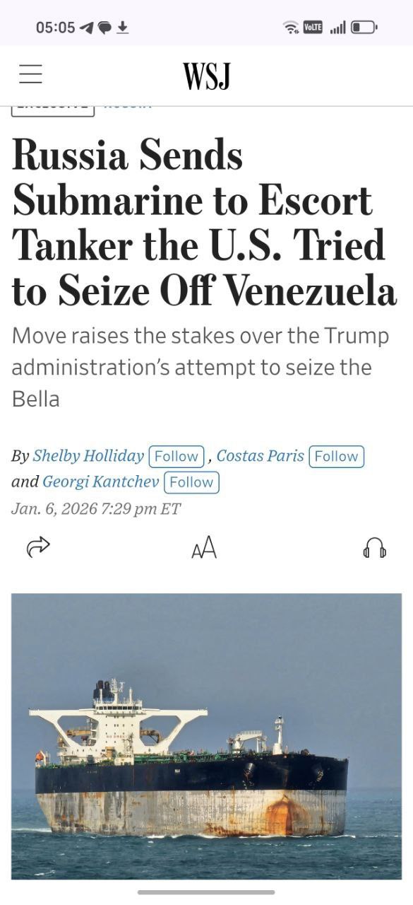 "Россия направила подводную лодку и другие военно-морские подразделения в Северную Атлантику для защиты танкера Marinera от возможного захвата американскими военными"