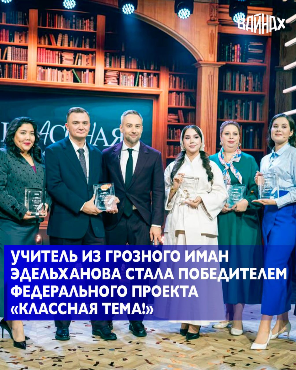 В эфире телеканала «Россия» состоялся финал IV сезона Всероссийского просветительского проекта «Классная тема!». Победу в нём одержала команда «Учителя», в составе которой выступила учитель химии МБОУ «СОШ № 7» города Грозного Иман Хасамбековна Эдельханова.