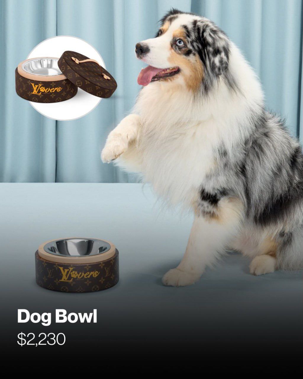 Она включает в себя изысканные ошейники, поводки и шлейки, коврики, одежду и т. д. Одна только миска обойдётся в ~180 000.