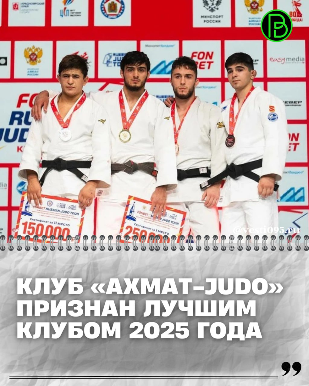 Федерация дзюдо России провела опрос в рамках номинации «Лучший клуб 2025 года». По итогам голосования победителем стал клуб «Ахмат-Judo», который также был удостоен приза зрительских симпатий.
