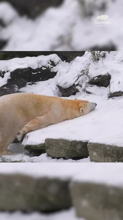 Белые медведи радуются снегу в зоопарке Берлина.