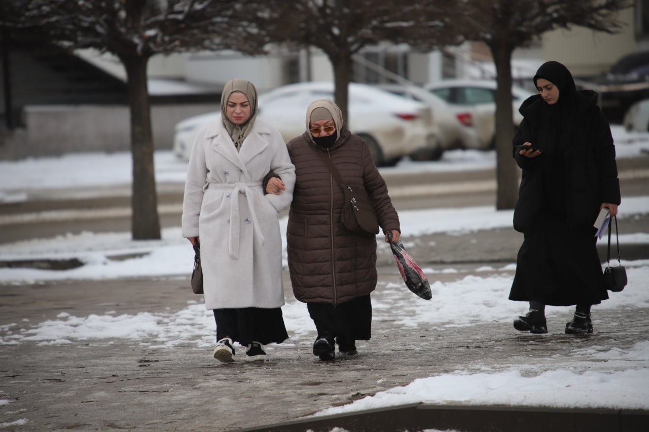 В Грозном выпал снег — нечастое для города природное явление. Белые хлопья укрыли улицы и дворы, придав столице республики по-зимнему уютный вид.