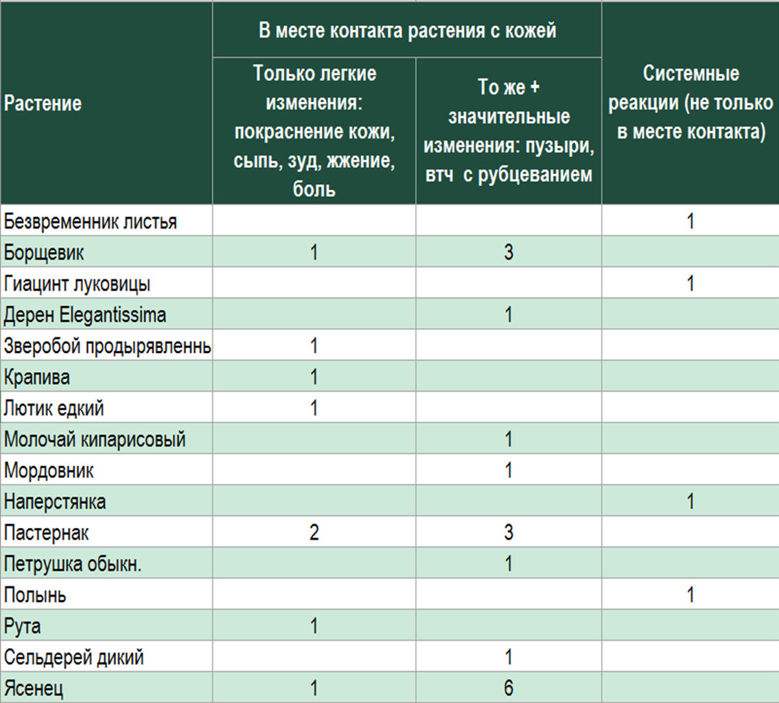 - Пастернак и ясенец регулярно вызывали кожные реакции у жителей различных регионов, включая Самарскую и Ленинградскую области.