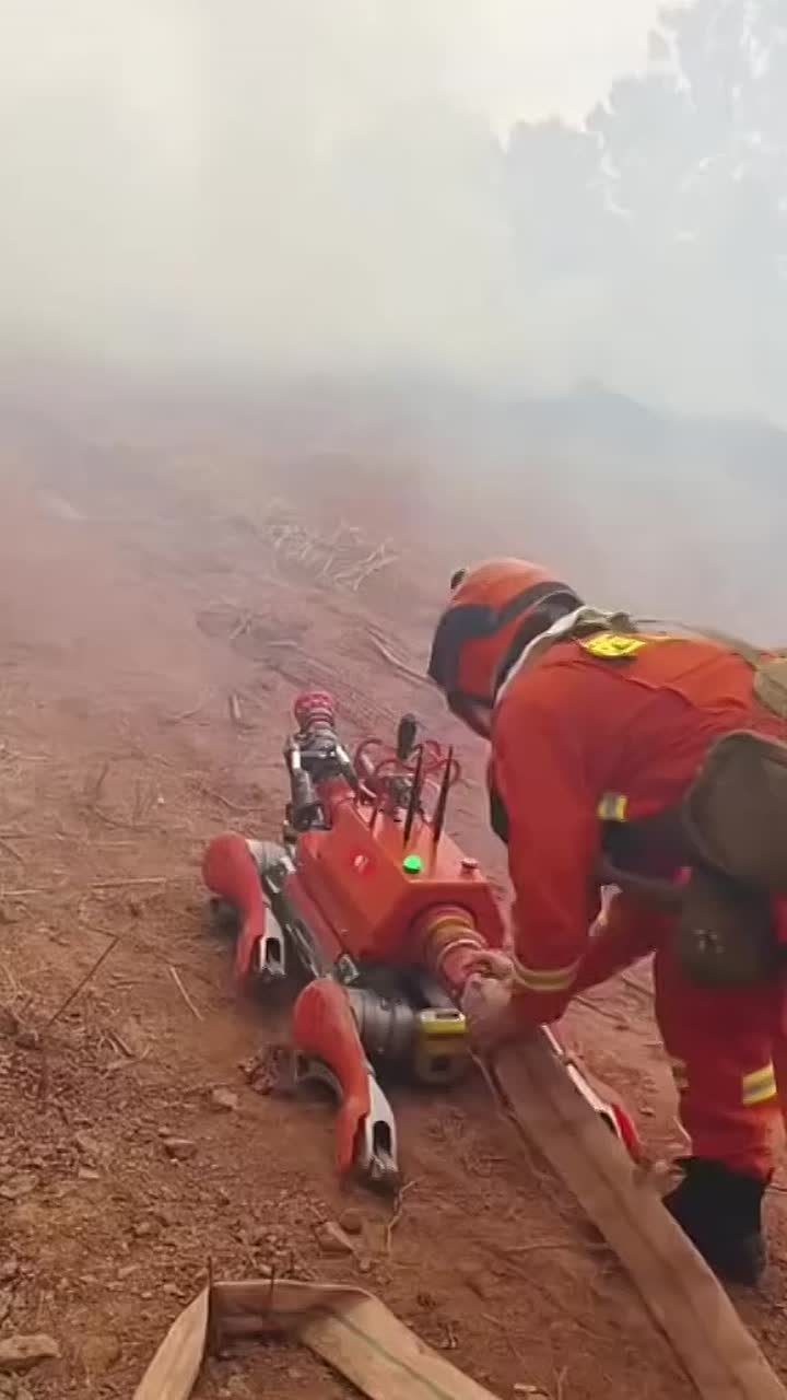 В Китае робособака Unitree B2 модифицирована для тушения пожаров. Она может удерживать мощный пожарный рукав и работать в сложных условиях, заменяя людей в опасных ситуациях.